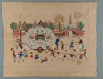 - ↑ Mies Bloch (1977). Kruissteekboek: van Hollandse landschappen tot speelse figuurtjes : van wandkleden tot wenskaarten : met véél borduurtips. Margriet. ISBN 978-90-70256-05-0.