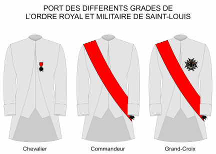 - Ridders (chevaliers) droegen een kruis aan een lint op de linkerborst.