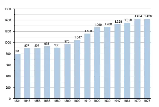- Bronnen:NIS, Opm:1831 tot en met 1970=volkstellingen; 1976 = inwoneraantal op 31 december