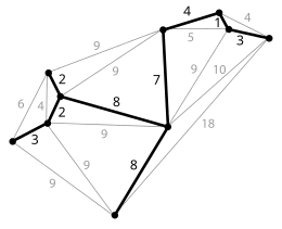 - ↑ bijvoorbeeld het Reverse-Delete-algoritme en Borůvka's algoritme
