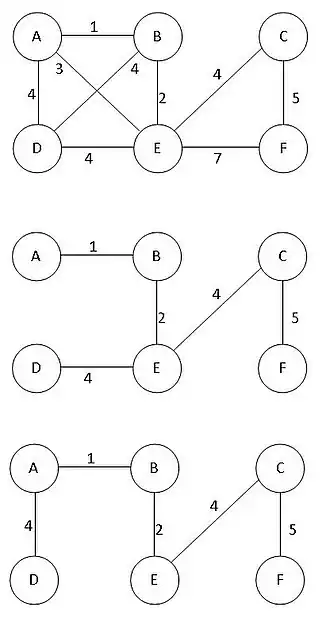 Hier een ander algoritme voor is Kruskals algoritme, maar er zijn er meer.[1]