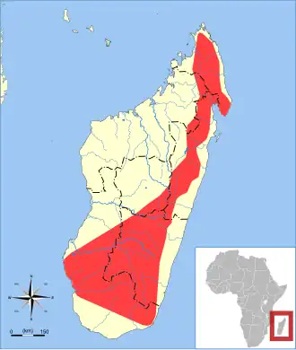| Verspreidingsgebied van Miniopterus majori | |||||||||||||