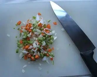 - Vette mirepoix (mirepoix au gras) bevat ook stukjes spek.