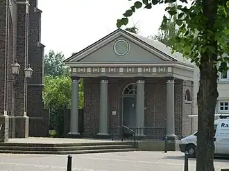 De kapel is gebouwd in neoclassicistische stijl en wordt gedekt door een zadeldak. De frontgevel heeft de vorm van een oude Griekse of Romeinse tempel en bestaat uit vier zuilen in de Dorische orde met daarboven een fronton. In de wand achter de zuilengalerij zijn pilasters aangebracht, evenals in de zijgevels.[1][2][3]