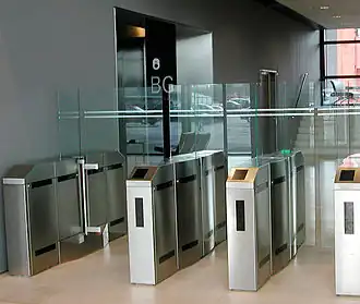Bij de entrees van gebouwen worden voor de toegangscontrole van personeel en bezoekers tourniquets of andersoortige poortjes geplaatst. Deze systemen zijn echter niet geschikt voor rolstoelen en kinderwagens. Daarom wordt in het algemeen naast een blok van tourniquets een speciale brede poort (90-95 cm) geplaatst waar rolstoelen en ook kinderwagens kunnen passeren.