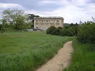 Nadat zij een brug overgestoken waren bereikten ze de tuinen voor het paleis. Daar zag Moberly een dame op het gras die tekeningen aan het maken was en die naar hen keek. Later beschreef ze wat ze had gezien in detail: de dame droeg een lichte zomerjurk, met op haar hoofd een breedgerande witte hoed, en ze had een grote bos blond haar. Moberly dacht eerst dat ze een toeriste was, maar de jurk leek daarvoor te ouderwets. Later kwam Moberly tot de overtuiging dat de dame Marie Antoinette zou kunnen zijn. Jourdain zag haar echter niet.