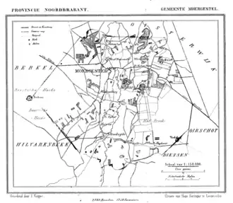 Het dorp Moergestel is voortgekomen uit vier herdgangen, Kerkeind, Heizen, Heuvel en Over ’t Water. In de middeleeuwen behoorde Moergestel tot het Kwartier van Oisterwijk van de Meierij van 's-Hertogenbosch.