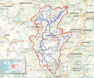 - in Frankrijk: de Moselotte, de Vologne, de Madon, de Meurthe, de Rupt de Mad, de Seille, de Orne, de Fensch en de Gander