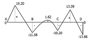Een momentenlijn is in de mechanica een diagram met de berekende of gemeten momenten in een dimensie (bijvoorbeeld lengterichting) van een plaat, ligger of balk. De richting waarop het moment werkt, wordt in een diagram met een + ('bolle kant onder') of - ('bolle kant boven') aangegeven. De figuur laat zien dat voor elke doorsnede een moment (en richting daarvan) bekend is.