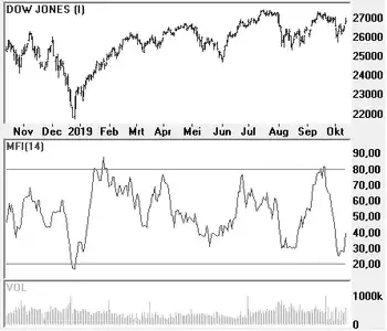 De Money Flow Index of MFI is een indicator in technische analyse die de geldstroom voor een aandeel aangeeft.[1] De indicator is verwant met de Relatieve Sterkte Index, maar differentieert zich door het in acht nemen van informatie over volume. Een hoge waarde van de MFI betekent dat er door de markt veel wordt gekocht (overbought). Een lage waarde van de MFI betekent dat er veel wordt verkocht (oversold). Divergenties zijn belangrijk bij de MFI, dus als deze indicator daalt terwijl de koers stijgt, dan is een trendomkeer te verwachten. Hetzelfde geldt voor een stijgende MFI in een dalende markt. Bij een MFI boven de 80 zit de markt waarschijnlijk tegen een top aan. Bij een MFI beneden de 20 is de bodem vermoedelijk in zicht.