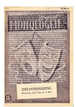 In toneelstukken komen vaak scènes voor waarbij een acteur aan het woord is zonder dat er andere acteurs op de toneelvloer aanwezig zijn. De acteur spreekt zijn gedachten dan hardop uit. Soms zijn er wel andere personen op het toneel aanwezig, maar die worden dan geacht de spreker tijdens zijn monoloog niet te horen. Een dergelijke mise en scène wordt aangeduid met "een terzijde". Wereldberoemd zijn de Shakespearemonologen van onder anderen: