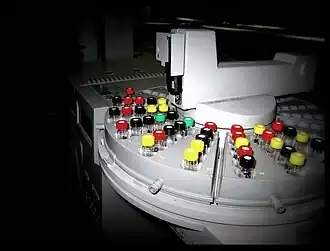 Een monstercarrousel is een draaibaar plateau waarop zich de monsters bevinden. Het monsternamepunt bevindt zich boven de carrousel en is niet of beperkt beweegbaar. Monsters worden onder het monsternamepunt geplaatst door de carrousel te draaien. Monsters worden aangeduid met een volgnummer op de carrousel en eventueel een aanduiding van de concentrische ring waarop ze zich bevinden.