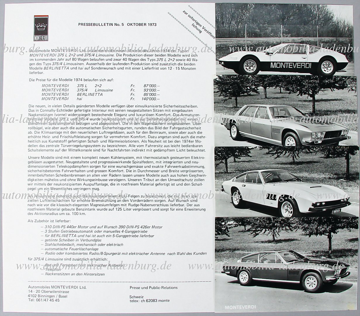 - ↑ (de) (en) Monteverdi Sales Brochure uit 1975, My Virtual Museum, 10 februari 2013