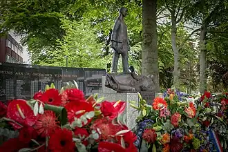 De maker van het monument is John Grosman (Delft, 1916 – Zwolle, 1970).5 Hij was lid van de Amsterdamse kunstenaarsgroep Scorpio. Naast beeldhouwer was hij ook schilder, tekenaar en bronsgieter en perfectioneerde hij de cire perdue-techniek uit de beeldhouwkunst.6 Naast dit monument in Veenendaal ontwierp hij ook oorlogsmonumenten voor andere plaatsen, waaronder Boven-Leeuwen, Brummen en Almelo.7