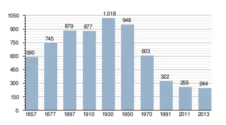 - Bron: INE, 1857-2011: volkstellingen