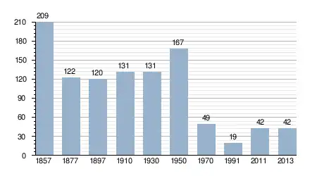 - Bron: INE, 1857-2011: volkstellingen