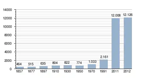 - Bron: INE; 1857-2011: volkstellingen