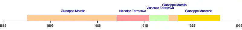 In 1909 werd Giuseppe Morello wederom veroordeeld wegens valsmunterij en werd zijn zwager en rechterhand, Ignazio Lupo, veroordeeld tot 30 jaar cel. In het eerste jaar van zijn gevangenschap wist Morello zijn positie als leider te behouden. Toen zijn hoger beroep werd afgewezen, nam zijn halfbroer Nicolo Terranova het leiderschap over. Nicolo probeerde in 1910 alle maffiafamilies, en vooral de Camorra, samen te laten smelten tot één organisatie. Ondanks zijn goede onderhandelingskunsten mislukte dit. Op 7 september 1916 werd Nicolo, samen met zijn lijfwacht Charles Ubriaco, vermoord door een Napolitaanse Camorrabaas uit Brooklyn, Pellegrino Morano. Vervolgens nam een andere halfbroer, Vincenzo Terranova, het leiderschap over met hun halfbroer Ciro Terranova als onderbaas. In 1920 nam Giuseppe "Joe the Boss" Masseria, voorheen een caporegime onder Giuseppe Morello, het leiderschap over in Manhattan en richtte Salvatore D'Aquila zijn eigen familie op (die zou uitgroeien tot de familie Gambino) met als thuisbasis Brooklyn. Giuseppe Morello, die op dat moment door het leven ging als Peter Morello, huurde het voormalig Camorralid Rocco Valenti in om Masseria te vermoorden. Na twee mislukte aanslagen werd Valenti op 11 augustus 1922 door Charles Luciano, een soldaat onder Masseria, doodgeschoten. Morello en Masseria sloten vrede en Morello werd aangesteld als raadsheer (consigliere) van Masseria. Luciano kreeg voor de moord op Valenti de rang van caporegime en mocht daardoor zijn eigen regime runnen.
