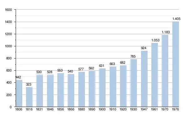 - Bronnen:NIS, Opm:1806 tot en met 1970=volkstellingen; 1976 = inwoneraantal op 31 december