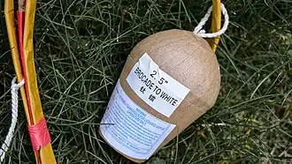 De ontbranding van de stijglading steekt de vertragingslont van de mortierbom aan, zodat de effectlading korte tijd later ontbrandt en te zien en horen is.