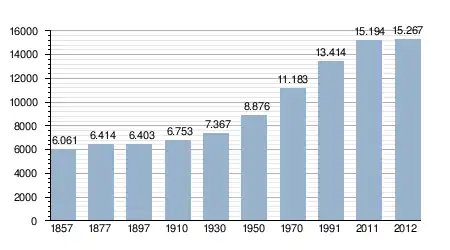 - Bron: INE; 1857-2011: volkstellingen