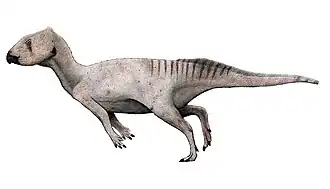 Het dijbeen is zwak naar voren gebogen. De vierde trochanter, de aanhechting voor de retractorspier van de staart, is groot en maar licht afhangend als bij de meeste Ceratopia buiten de ceratopiden. Het scheenbeen heeft een rechte schacht en is langer dan het dijbeen, de basale toestand. De voet is lichtgebouwd en langwerpig met een ingesnoerde middenvoet en langwerpige teenkootjes. De voetklauwen zijn slank en puntig, de basale vorm. Een facultatief tweevoetige gang lijkt hierdoor niet uitgesloten.