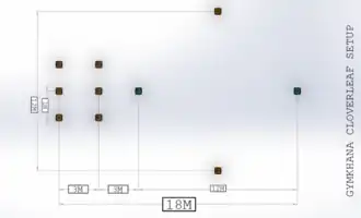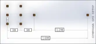 Hier start de rijder in het startvak, gaat tegen de klok de eerste kegel, dan met de klok de bovenste, tegen de klok de rechter, met de klok de onderste, en tegen de klok opnieuw de linker.