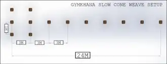 De rijder start in het startvak, neemt alle kegels als een slalom, keert om, slalomt nogmaals, en eindigt in het stopvak.