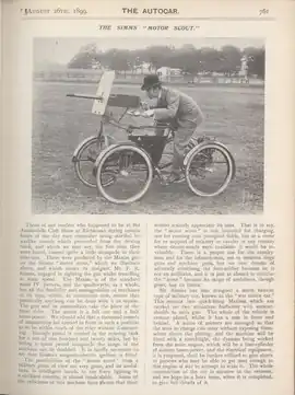 - ↑ a b (en) Simms's Motor Scout was the first armed petrol engine powered vehicle ever built. The Vintage News (9 juli 2016). Geraadpleegd op 15 mei 2017.