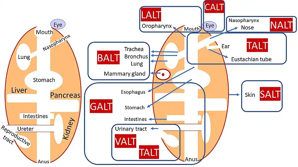 - CALT (conjunctivageassocieerd lymfoïd weefsel)[2]