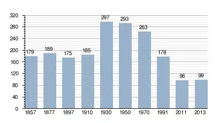 - Bron: INE, 1857-2011: volkstellingen