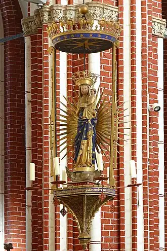 Het hoofdaltaar (circa 1300) is een vroeg voorbeeld van een vleugelaltaar. Zonder de pinakels is het hoogaltaar vier meter hoog; het werd in de 19e eeuw gerestaureerd. De zeven nissen met wimpergen in het centrale deel boden ooit plaats aan relikwieën. Boven het middendeel verheffen zich drie sierlijke pinakels, waarvan de middelste tot een hoogte van zes meter reikt. Op de vleugels staan in de beide bovenste beeldenrijen scènes uit het Oude en Nieuwe Testament. De beelden van de onderste rij zijn van iets jongere datum en onderscheiden zich niet alleen stilistisch maar ook inhoudelijk (het betreffen de 12 apostelen, de beschermheiligen tegen de pest,paus Fabianus en Sint-Sebastiaan en de kroning van Maria).