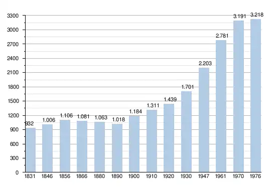 - Bronnen:NIS, Opm:1831 tot en met 1970=volkstellingen; 1976 = inwoneraantal op 31 december