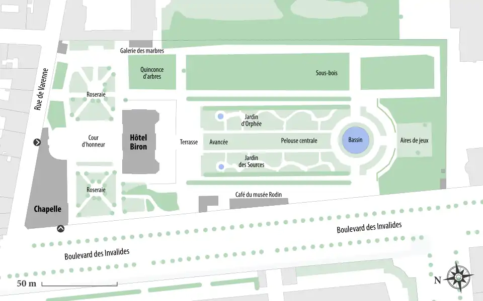 Het beeldenpark van Musée Rodin omvat een uitgebreide collectie werken van Rodin, waaronder: