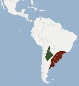 De soort komt voor in Brazilië, Uruguay en Argentinië.