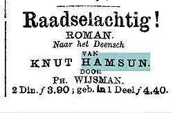 - In 2009 verscheen een nieuwe Nederlandstalige vertaling van Marianne Molenaar. "Totaal onverwacht sloeg de literaire komeet Knut Hamsun bij mij in. Zoiets had ik nog nooit gelezen. Nog nooit", schreef P.F. Thomése in een recensie over deze nieuwe vertaling in De Volkskrant.