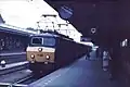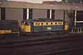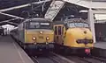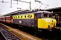 De geel-grijze 1147 met intercityrijtuigen in Eindhoven