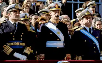 Op 24 maart 1976 werd Isabel Martínez de Perón afgezet als presidente na een instabiele politieke periode met onrusten in het gehele land. De militaire junta van generaal Jorge Videla pleegde een staatsgreep. Hoewel de Vuile Oorlog al bezig was van 1974 en de dood van president Juan Perón kwam de staatsgreep er pas in 1976. De Argentijnse militaire dictatuur werd ingesteld met Videla als president.