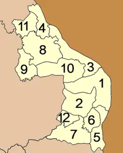 De provincie is onderverdeeld in 11 districten (Amphoe) en 1 subdistrict (King Amphoe).