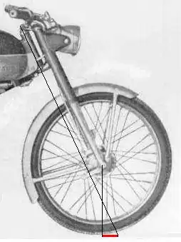 De naloop wordt bepaald door de balhoofdhoek en de vorksprong.