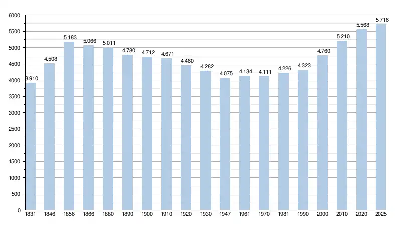 Alle historische gegevens hebben betrekking op de huidige gemeente, inclusief deelgemeenten, zoals ontstaan na de fusie van 1 januari 1977.