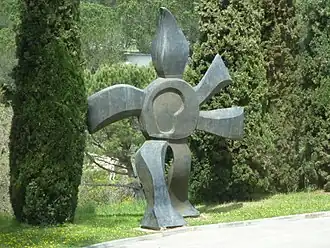 De tuin van het museum werd ontworpen door Henri Fisch. De glooiende tuin is zo aangelegd dat de mozaïeken van de zuid- en westvleugel vanuit verschillende posities goed zichtbaar zijn. Aan de rand van de tuin staan twee sculpturen: ‘Le jardin d’enfants’ en ‘Fleur qui marche’, een eerbetoon aan het ceramische werk van Léger. Samen met zijn vriend en leerling Roland Brice werkte Léger aan het transformeren van motieven uit zijn schilderijen tot ceramische sculpturen. Hij financierde in 1951 de aanschaf van een grote oven voor het maken van monumentaal werk in het atelier van Brice [4]. Zo kwam in 1952 ‘La Fleur Polychrome’ tot stand. Léger ontwierp daarna een variant op dit beeld ‘La Fleur qui marche’. Het moest staan voor de ingang van het ‘Hôpital Mémorial France-États-Unis’ in Saint-Lô ontworpen door Paul Nelson met wie Léger nauw samenwerkte. Het door Léger gedachte beeld kwam daar nooit te staan, maar in de tuin van het museum realiseerde Roland Brice een 3,15 m hoog beeld. Het beeld werd in de jaren erna nog een aantal keren (vergroot) gereproduceerd. Er bestaan vijf gepatineerde bronzen uitvoeringen van dit beeld. ‘Le Jardin d’enfants’ is het andere in het oog vallende sculptuur. In 1958 had Nadia Léger Claude en Roland Brice gevraagd dit sculptuur te maken. De ceramische elementen werden in het atelier van Brice in Biot afzonderlijk gebakken en daarna in de tuin van het museum geassembleerd tot een sculptuur van 6,6 m hoog.