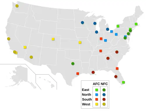 | Aangesloten liga's | AFC, NFC | |||