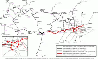 - ↑ Achtergrond is de GTF kaart, Les voies Ferrées de Belgique, Tekenaar G. Close. Uitgebreid aangepast en herwerkt met behulp van onder andere "Rail Atlas vicinal" van Rail Memories, Google Earth, oude kaarten en andere bronnen.