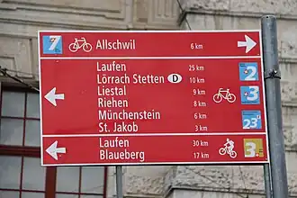 - In Bazel kan worden aangesloten op de regionale route Dreiland-Radweg (nummer 97).