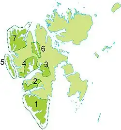 | Nordvest-Spitsbergen (7) | 9.914 totaal; 3.683 land; 6.231 water | 1973 | Nee |