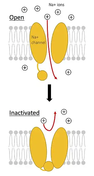 De kans dat een natriumkanaal open gaat wordt snel groter wanneer de membraanpotentiaal een bepaalde drempelwaarde overstijgt. Door het openen van deze kanalen stromen natriumionen de cel binnen, waardoor de membraanpotentiaal verder stijgt. Zo ontstaat een kettingreactie die de membraanpotentiaal zeer snel doet stijgen vanaf de rustpotentiaal, en een actiepotentiaal veroorzaakt. In veel celtypen, waaronder hartspiercellen, maakt dit het openen van calciumkanalen mogelijk. De daarop volgende instroom van calcium-ionen beweegt de cel er toe een bepaalde taak uit te voeren, zoals de samentrekking van de spiercel. In grote delen van neuronen zijn er geen of weinig calciumkanalen, en is de voortplanting van de actiepotentiaal een doel op zich.[1]