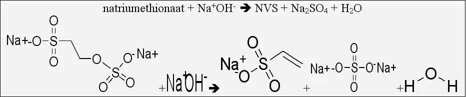 Daarna reageert het natriumethionaat met gepolariseerd NaOH verder tot NVS en twee nevenproducten, Na2SO4 en H2O.