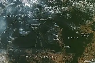- ↑ (en) New worry over August deforestation in Brazilian Amazon. phys.org (11 september 2020). Gearchiveerd op 21 november 2020. Geraadpleegd op 8 december 2020.