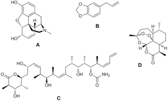 - ↑ (en) Cutler S, Cutler HG (2000). Biologically Active Natural Products: Pharmaceuticals. CRC Press, p. 5. ISBN 978-0-8493-1887-0.